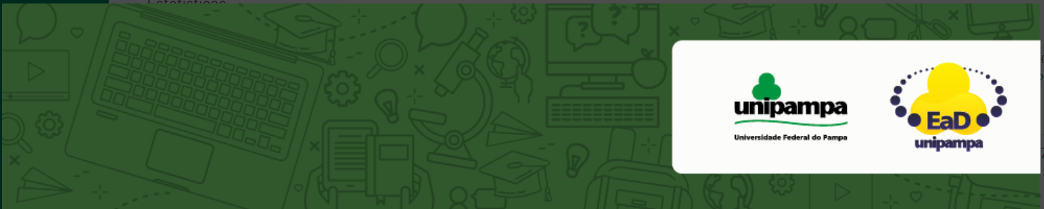 Descrição da imagem: [a imagem em formato de retângulo na cor verde, com vários desenhos ao fundo que representam tecnologias digitais e analógicas, como computadores, lupas, calculadoras, lâmpadas, entre outros. Da direita para a esquerda: imagem da EAD Unipampa que diz: "EAD UNIPAMPA". Imagem institucional da UNIPAMPA que diz: UNIPAMPA - Universidade Federal do Pampa]